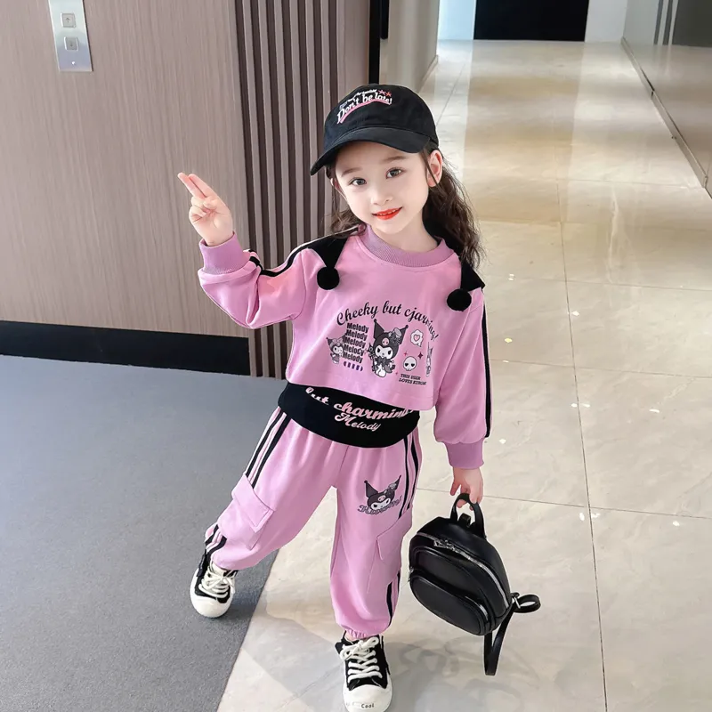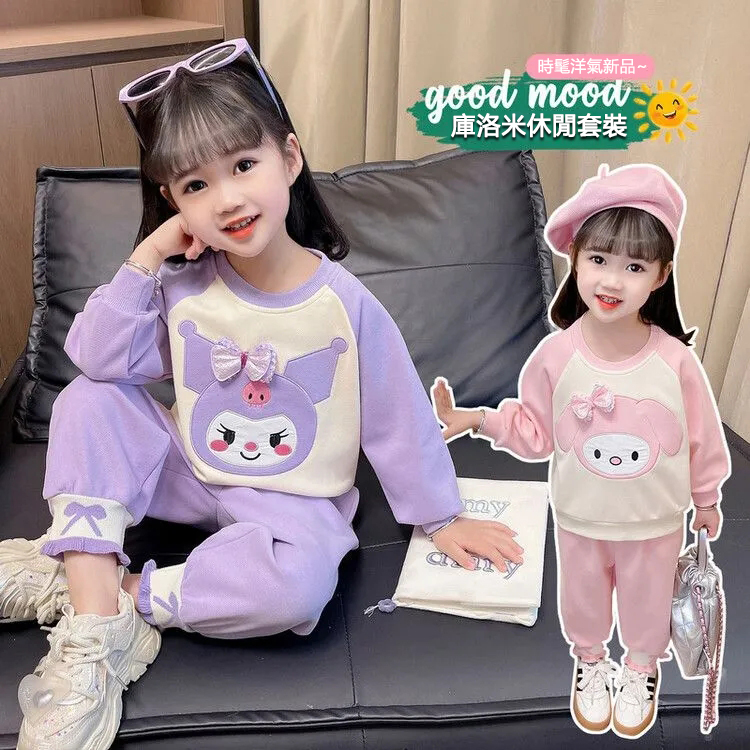 【熱銷爆款】兒童庫洛米運動休閒長袖上衣+褲子兩件組,贈送兒童髮飾18件