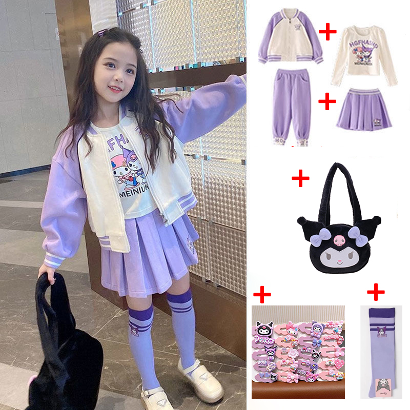 2025新款Kuromi超值4件套,棒球服外套+裙子+褲子+T恤,贈送兒童髮飾髮夾20件