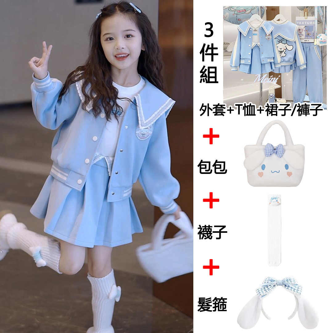 2024新款肉桂狗美樂蒂超值3件組,外套+T恤+裙子/褲子【贈送髮飾+包包+襪子】