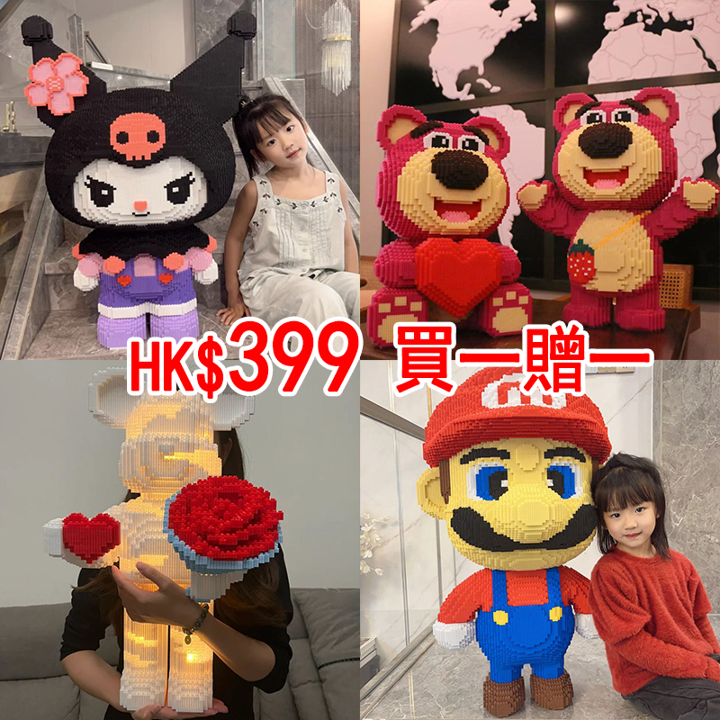 【限時買一送一】超大暴力熊 庫洛米 美樂蒂 草莓熊 積木拼圖 3D立體大擺件 附帶視頻和說明書