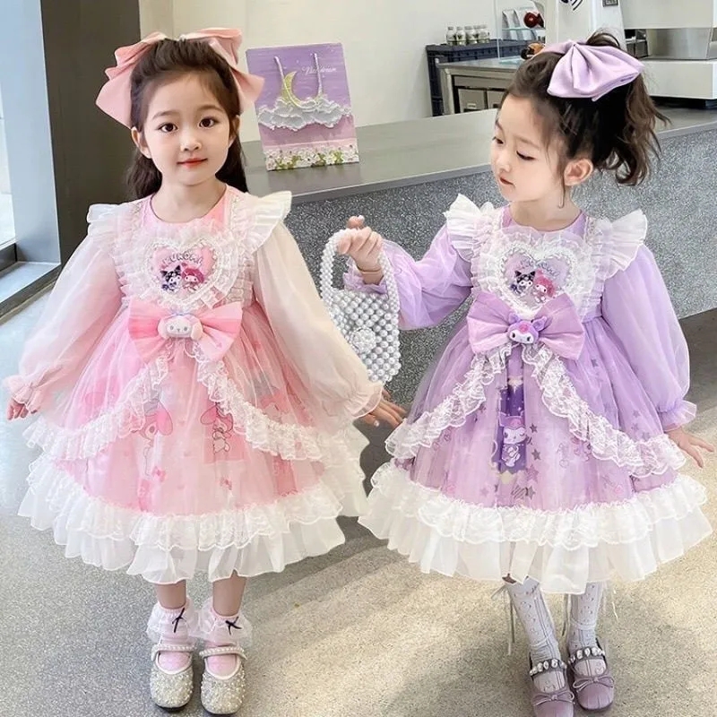 2025年新款庫洛米美樂蒂女童Lolita蓬蓬可愛時尚公主裙【裙子+襪子5雙】,生日洋氣禮服