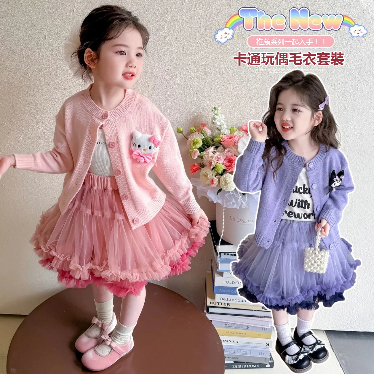 女童超好看庫洛米秋季時髦洋氣針織開衫外套+蓬蓬裙兩件組