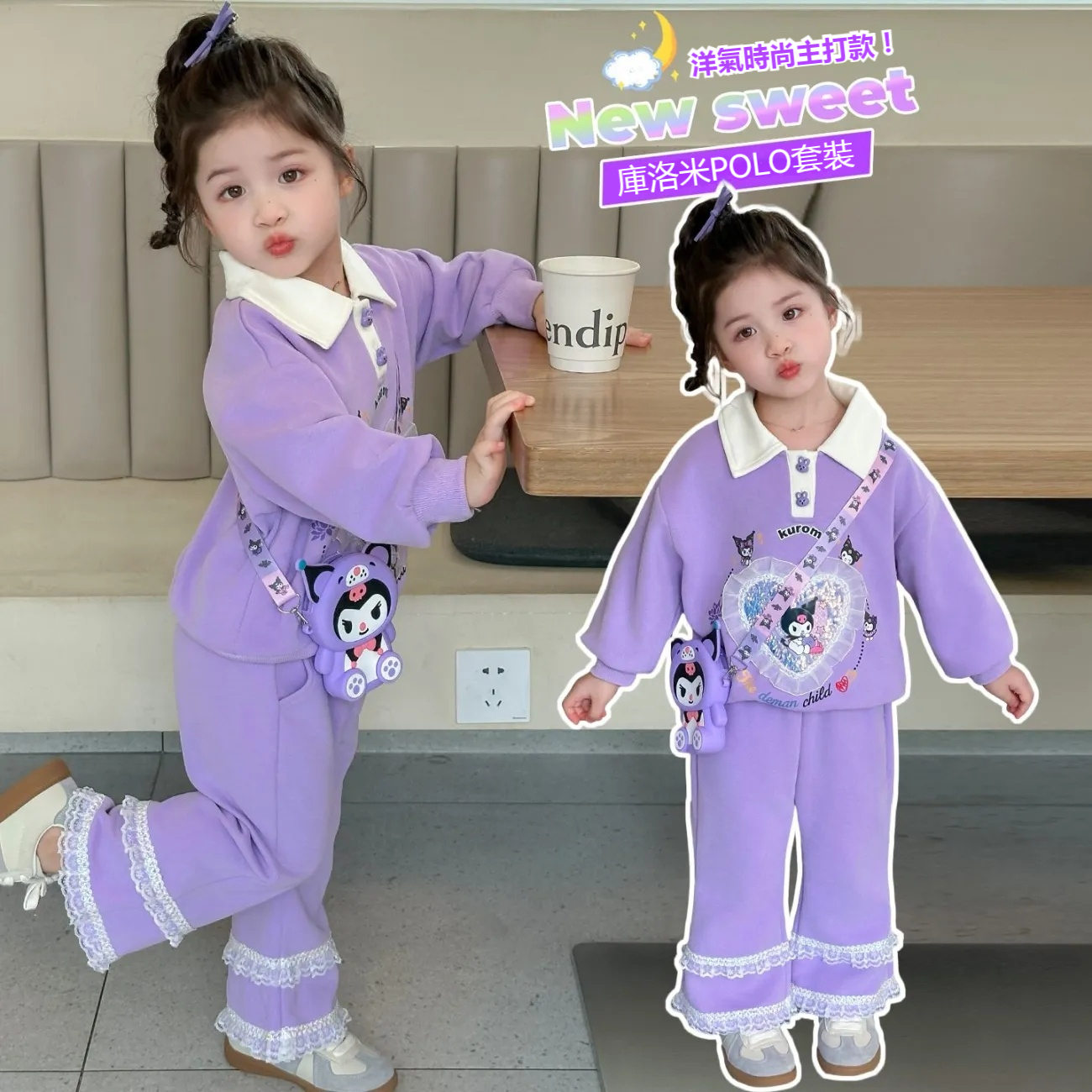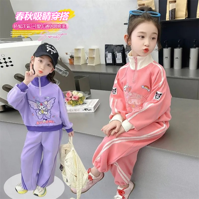 2025庫洛米新款洋氣兒童衛衣+褲子休閒運動加絨兩件組【贈送兒童髮飾髮繩16件】
