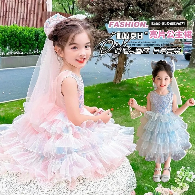 閃鱗人魚姬女童無袖潮流公主裙【贈送同色頭紗頭飾】