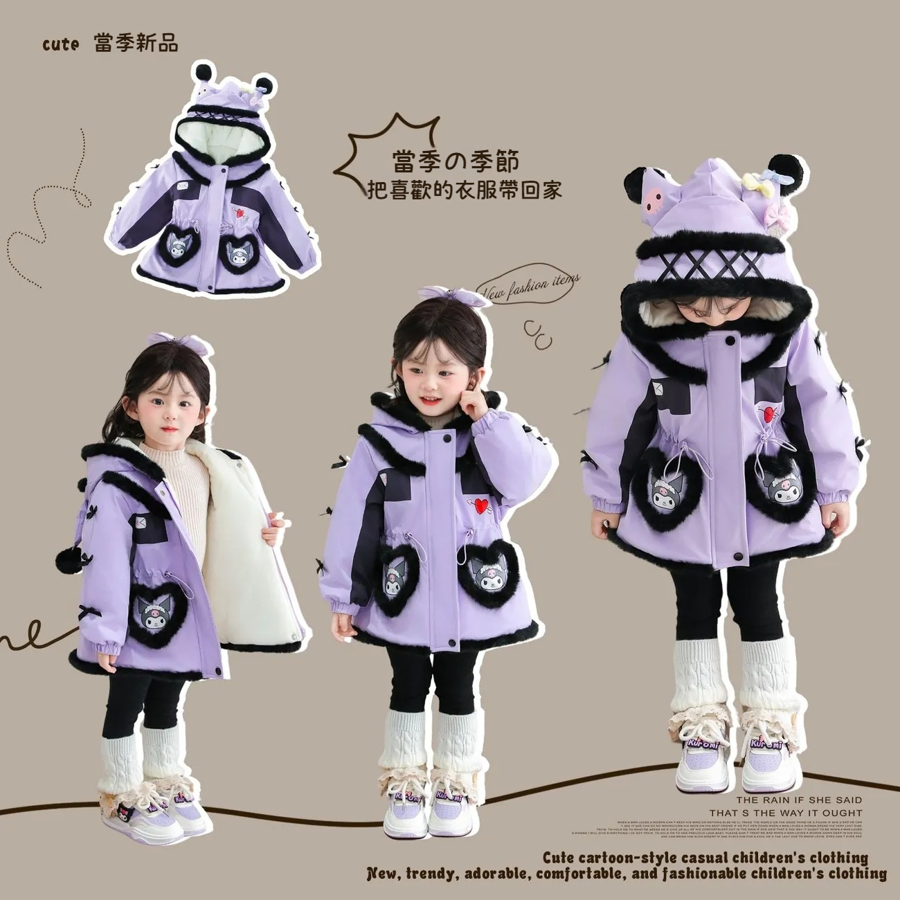 2025秋冬兒童庫洛米加絨加厚連帽衝鋒衣外套【贈送兒童髮飾髮繩16件】