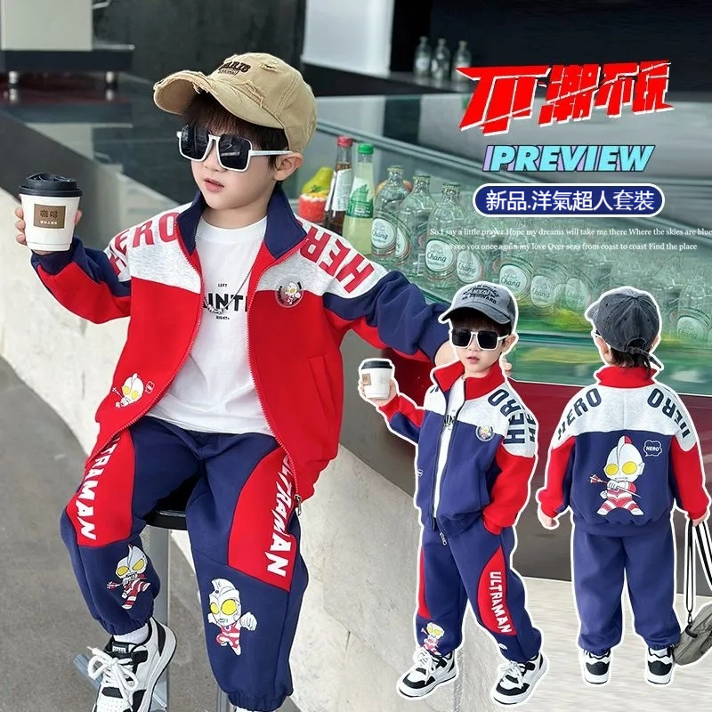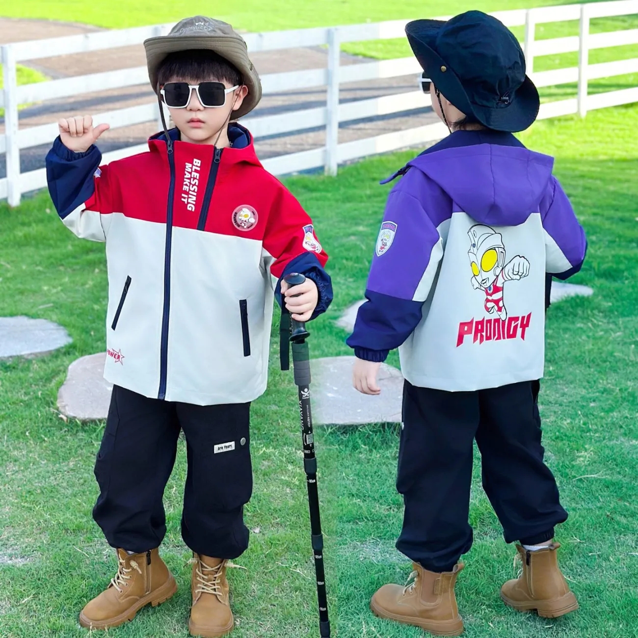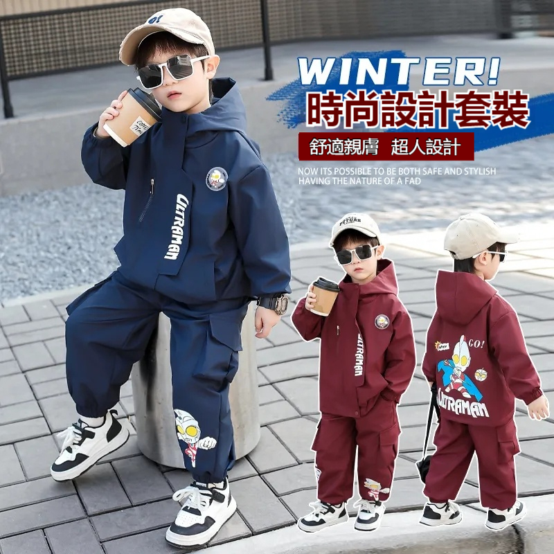 2025年新款超人帥氣男孩衝鋒衣外套+褲子,春秋款/加絨加厚運動套裝